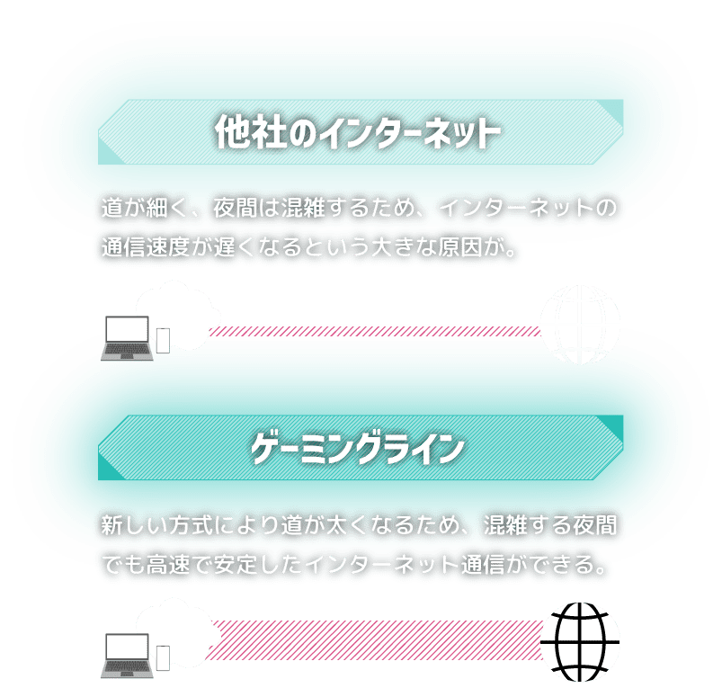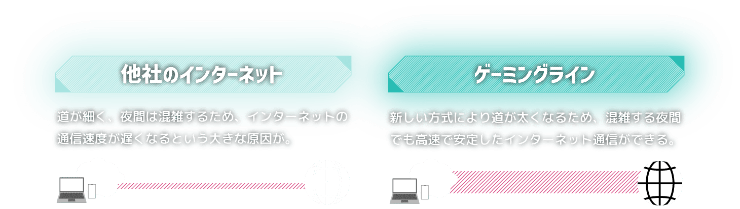 ゲーミングラインプロフェッショナルは、最新の通信方式であるIPv6 IPoE方式を採用。