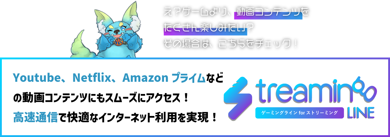 ゲーミングラインの場合、インターネットの速度に大きな影響を及ぼす宅内ルーターの性能が優れているため、ルーター機器をしっかりたいものにしたい!という方にもおすすめです。